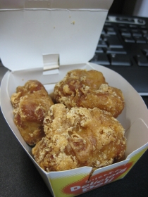 その帰りに寄ったいい気分なコンビニで和風鶏からあげ。衣がさっくりしてて旨いのヨ。