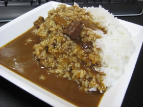 …まあ、旨いけれどサ。2割引だったし。お好みの辛さを調整出来るスパイスを先にパラッと。箱の奥に入っていたペーストを投入して一気にホット!!