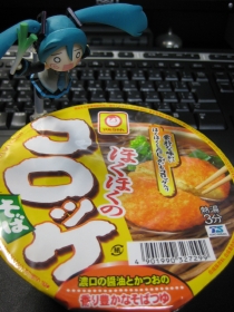 見るからにマズそうなダメそうな一品。他の具はワカメだけという、すごい力の入れ具合はいいけれど、肝心のコロッケ割れてるし。でも、悪くなかったという。