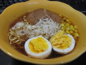 焼き豚の他に近所のコンビニでコーン缶と長ネギ(!! しかも2本で100円とか安かった)を補充して頂く。生麺感覚でなかなか旨い。