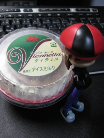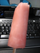 …どこかで見かけたような。こちらは若干大きめで4ピース入り。ゆずゆずしててなかなか旨い。もう一種類ののり塩も気になるところ。フォークが付いていたのが新鮮。こんなアイスも見つけタ。