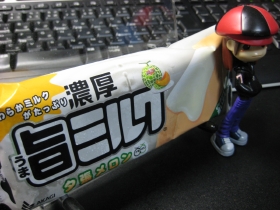 最近アイスコーナーで見かける桃の。不味くはないのだけれどもうひと頑張り欲しい。アイスバーとかのがイケるんじゃなイカ。