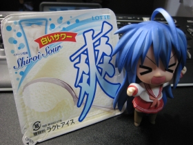 時期が時期なので、陳列された棚には虫がちらほら。それを回避つつチョイスしたけれど、レジで交換してたから無意味だった模様。正直、小さな虫一匹二匹どうでもよいのだけれど、バカなク○ーマー連中はこの世の終わりみたいなレベルで大騒ぎするんだろうなあ。見慣れないアイスも見つけたヨ。