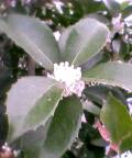 昨日、銀木犀の事を書きましたが、もしかしたら柊木犀の間違いかもしれま せん。 銀木犀も葉が鋸歯の場合があるとの事だったけど、垣根や街路樹の多くは柊 と銀木犀の雑種である柊木犀だということらしいのです。 てか、そんな木犀もあるのかいとびっくり。(他にもある) でも花の形と香りにそんなに違いはないそうなので、とりあえず銀木犀の香 りも記憶にインプットです。