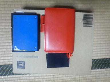 内容はやたらとたくさんあるレターセットと面白ハガキ(変形サイズってやつね)と、便箋がメイン。 クリアファイルと、ノートやバッグに貼り付けて使うクリアケース数枚。 一番重かったのはこれかと思える、水鉢つきのフローティングアロマキャンドル。 立派な箱に入っていたものは三つあって。 一つはやたらと仰々しい蒔絵柄のボールペン……使ってたら間違いなく剥げるな……。 一つは、案の定、ダヴィンチの皮(本皮)のシステム手帳。バイブルサイズ。これは入れて来ると思ってた……使う予定が皆無なところも含めて、今後が悩みどころの一品。 最後の一つが、最大の悩みどころ。ミニ6穴のシステム手帳。本皮製。 でも、びっくりすることに、この品が値段タグのついていた製品の中では一番高い。9800円。