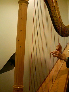 演奏会の後、Aちゃんのハープの自主練習を知人のボマーな貴婦人Hさんと一緒に見学させて頂く。 ハープは大変高価な楽器だそうで、練習用のミニ・ハープさえ最低10万以上はするのだそうだ。 まだ自宅にハープが無いあきちゃんは、わざわざ楽器付きのスタジオを借りて自主練習しているのだそうで、 しかもスタジオも、かなり混み合っていて、なかなか予約が取れないと云う。