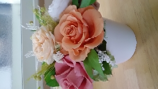 このプリザーブドフラワーも、無味乾燥地帯の茶の間に色味をと、ちょっと奮発しました。
