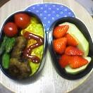 洋食続きだったので突然和食が食べたくなり、ゆえに昨日は炊き込みご飯に鳥とイモの煮付けでした。しかし、前二つは味が薄くてねえ(苦笑)。今日のは、予告どおり、オムライス弁当です。上の段はイチゴとリンゴです。手抜きです!(苦笑) オムライスは、かたちは上手くできるようになりました。でも卵をふわふわにするのはまだ練習が必要かと。おべんと用にはふわふわでなくても良かったので良し。チキンライスはただケチャップ味にするとつまらないので、お好み焼きソースとコンソメスープを混ぜてみました。コンソメは、ロールキャベツの残り。