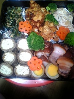 起床朝五時 前日かなり造りこんでいたわりには手際が悪かったのか二時間半かかっても出来上がらず。猛省。 米7合 丁度良かった 去年から人数が三人減なので、量は丁度良かった。 んー、去年と内容がかなり被っているせいか、味の単調さは否めない。 来年はパン系統でせめるのもよいかもしれない。