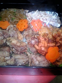 しらたきキンピラ(当日) から揚げ(当日) 他は残りでうめうめ