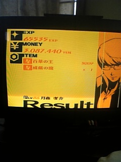 そしてそして P4なんだけど、一度の戦闘での経験値上限があるのねえ… Lv91までの道のりは長い… そして、およそ12時間の放置プレイの結果、ありえない大金を手にするP4主人公。 うおおおおお、いっぺんでいい、手にしてみてえええええ