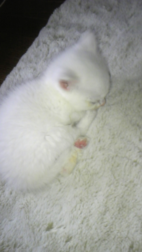 目やにとか汚れで片目がなかなか開かなかったけど、今はぱっちりお目目です。綺麗な青い目でめんこい子です。 でもカメラを向けられても大人しくしていないので、お披露目できません。 可愛い姿を自慢…じゃないや、披露したいです。 でも早くおっきくならないかなあ。成猫の方が好きなんだよー、子猫は小さすぎて扱いが怖いです。