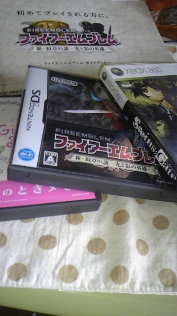 とりあえずまだキャラ一人しか攻略していないのに、ときメモGS3はお休みです。 FEを買いました。 あと、シュタインズゲートを…… シュタインズゲートは積みそうだけど、前々から欲しかったので、思い切って買いました。 どうせ、廉価版でたり、PS3版が出たりするんだろうけど、それでもいいんだ。