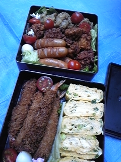 とりかかりが遅かったために、夜3時までかかる 朝は通常通り6時 揚げ物と卵焼きとおにぎりのみ朝つくる