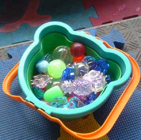 そんなわけで、結局のんとむつでプール。 最近2人のお気に入りは、お祭りの時「宝石すくい」ですくってきた 「宝石」だ。