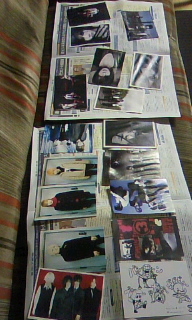 うぎゃあああ!とばかりに、とりあえずそーっとそーっとなんとか全部ファイルから出して、新聞の上に並べて天日干し(室内だが)してますが。既にベコベコだし端っことか変色してたりするし、泣きそうです(泣)。 一番古いスライドん時のやつなんか、正くんの顔のところがちょっと剥がれちゃったし…でもそれとか、散リユクん時のとか、絶対捨てられないもん!乾いて! 一番ひどい感じなのは、忘却モノローグ特典のやつ。端っこ変色してるし、2枚一緒に入れてたからくっついちゃってるし。ガジェットグロウの太朗くんもひどい…(涙)一枚だけ無事だったけど、一番気に入ってないやつだしさ!