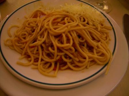写真はふつうのスペイン料理レストランにてすごく久しぶりに頼んだ 「スパゲティボロネーゼ」。 やっぱりゆですぎよー。変わらなかったか。 塩味・・・ではあるんだよねえ。ひき肉の味もします。たぶんトマトソースの味が不可思議なんだと思う。