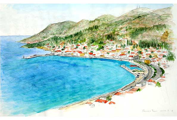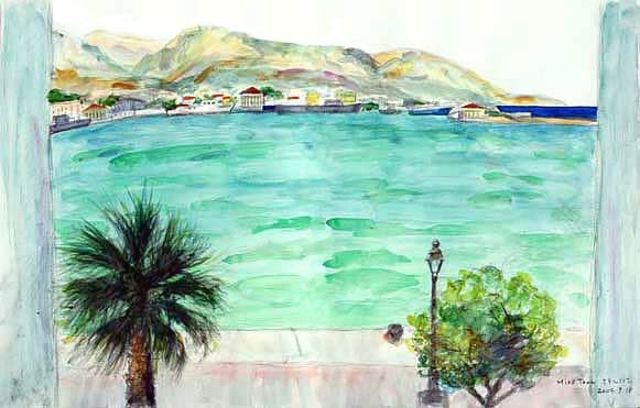 今日は殆どホテルの窓から見えるヒオス・タウン港の風景を描いた。ヒオス島には世界遺産の建造物もあるが、私は古いものにはあまり興味がない。小説家・村上春樹もそのようなことをエッセーに書いていた。