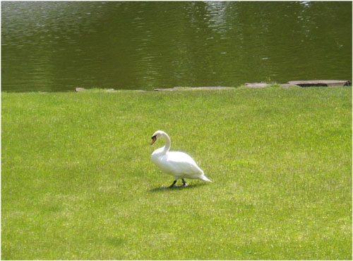 さて、そのカメラ。 この際だから、ミニラ写真をアップしてみましょう。 これは白鳥。 しかも陸の白鳥。 ( ̄▽ ̄)ノ_彡☆ばんばん!