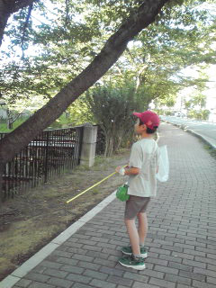 息子の腕が上がったからということはないと思うけれど。 捕れる捕れる。 蝉捕り放題。