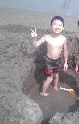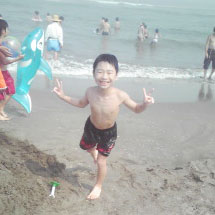 大網白里の海にて。 おおはしゃぎのミニラ。