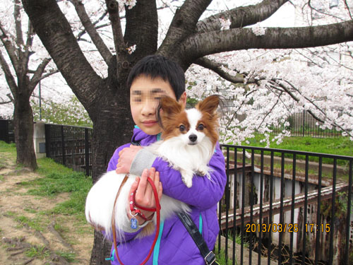 桜並木の下を息子と散歩しました。 あと何年これができるのかと思うと感慨深く。