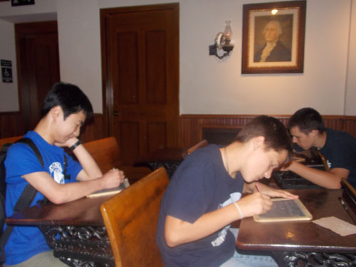写真は「勉強しているふり」の図ですな。 笑っちゃってるもんね、息子君。