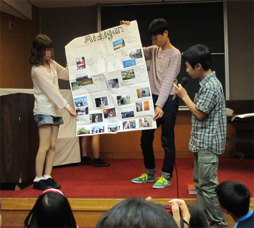 ラボの夏活動発表会でした。 素語りをする子は素語りを、黒姫山やその他キャンプに行った子達はその報告を、そしてホームステイに行った子8人はそれぞれどんなところに行ったのか、模造紙に写真を貼り、説明をしながらの報告。 息子・・・声が低くて何を言っとるのかわからんがね・・・。