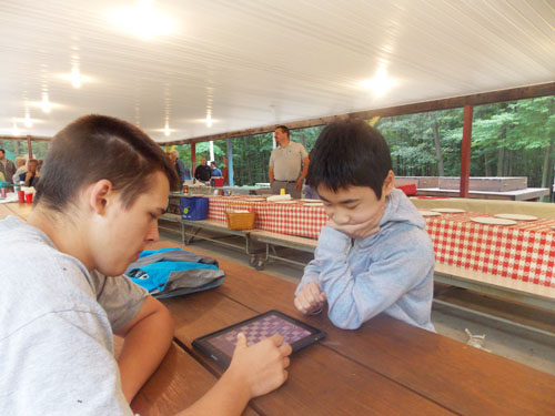 写真はホストとiPadでチェスをやっているところ。 負けたそうです(笑)。