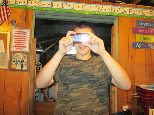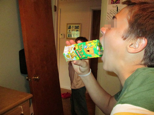 写真はステイ宅の地下室でのホスト。 お互いを撮り合ってるし(笑)。 全く中学生男子のすることったら・・・。
