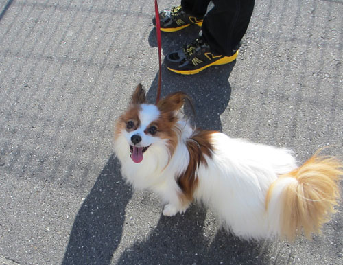 こちらは昨日のお散歩時の写真、その2。 ルビ子はおにーにが大好きなので、一緒にお散歩するとこんな感じ。 映ってるのは息子の足元。