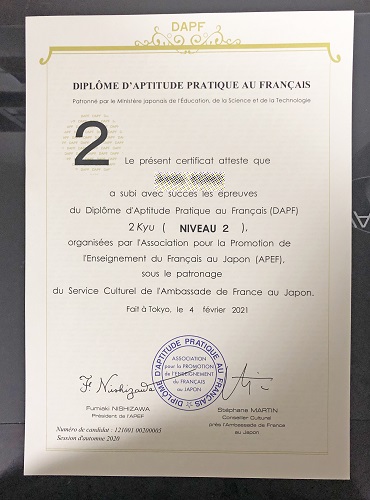 写真は仏検の合格証書。 何を書いてあるのかはさっぱりわかりまへん。