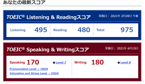 息子、TOEICL&Rに続き、S&Wの結果が出ました。 高3の受験時に比べて20点スコアアップ。 自己ベストです。 (S&Wの満点はそれぞれ200点)
