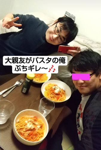 就職おめでとう〜というわけで一人暮らしになった友達の家に親友T君と一緒に押しかける。 もちろん就職祝いを持って。 散々遊んだあげく、就職した子に手作りパスタをご馳走になる。 と〜〜〜っても美味しかったそうだ。
