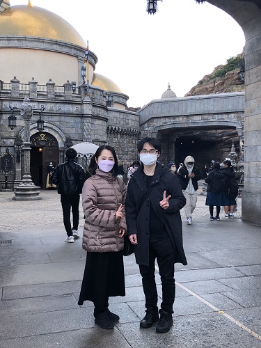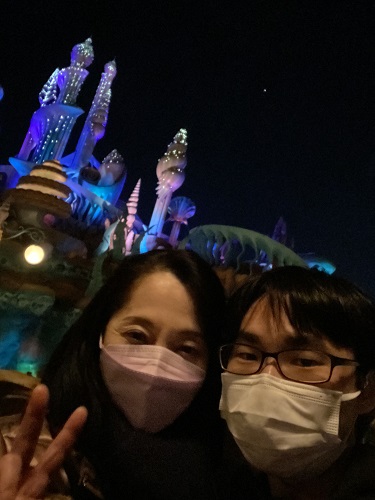 遊びに行くとなると起きられる息子。 5時半に起き、一緒に多分最後のDisney Seaへ。