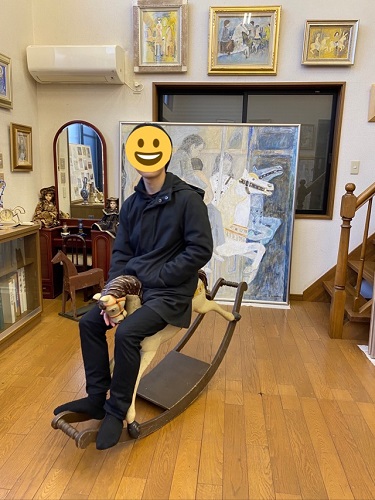 その後アトリエへ。 大掃除大掃除。 と言わなくてはならないほどの掃除はしなくても元々綺麗ですが(笑)。 息子は木馬に乗ってはしゃいでました。 何歳よ。
