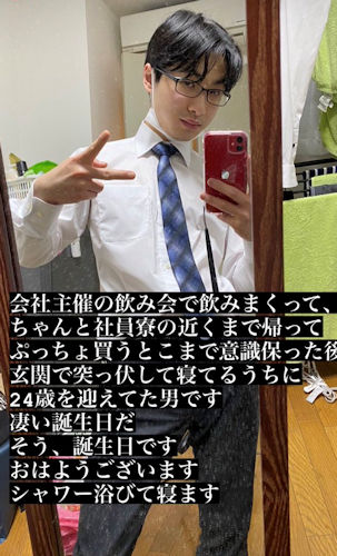 当然ながら公共交通機関は止まっているので、タクシーで帰ってきたらしい。 就職してから豪遊してるが大丈夫なのか?(笑)