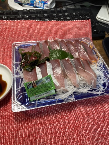 写真は晩御飯。 イナダ。 「メチャメチャ美味しい!」そうだ。