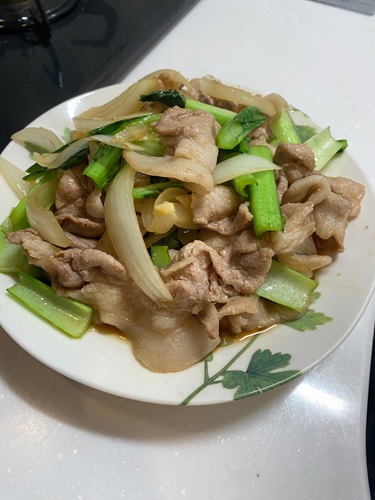 祝日で何をしていたのかは知らないけれど、夜はちゃんとおかずを作ったようで「豚コマ〜」と写真を送ってきた。