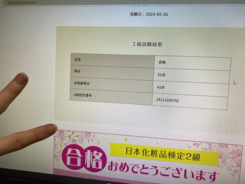 日本化粧品検定というのがあるそうだ。 (そんなものあることも知らんw) それの2級に合格したとか。