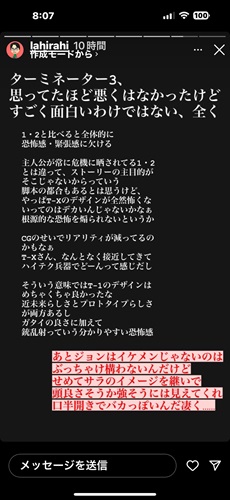 µ×¤·¤Ö¤ê¤Ë¡Ö¥¿¡¼¥ß¥Í¡¼¥¿¡¼¡×¤ò´Ñ¤¿¤é¤·¤¯¡¢¤½¤ì¤Ë´Ø¤·¤Æ¤Î´¶ÁÛ¤¬¤¤¤¯¤Ä¤â¾å¤¬¤Ã¤Æ¤¤¤¿¡£ ¤½¤¦¤«¤½¤¦¤«¡£ ¤ä¤Ã¤Ñ¤ê¤¤¤¤±Ç²è¤Ï¤¤¤¤¤è¤Í¡£