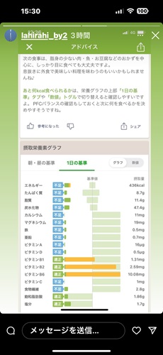 どんどん(というかほとんど)外食か、買ってきて食べる生活。 筋肉は落ち、でも普通よりは大分瘦せ型。 どうしよう、というのでこんな図をアップしていた。 多分アプリだな。 どうなりますことやらw