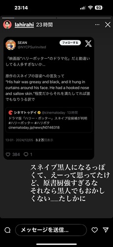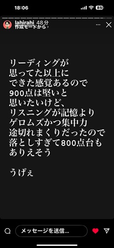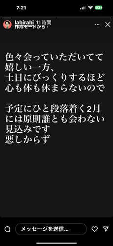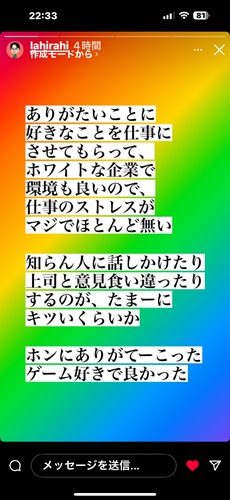 明日まで出勤とのことだし、慣れない職場でどう感じているのだろうと思っていたらインスタにこんなことを上げていた。