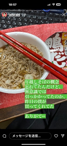 年越し蕎麦、どうするのかな〜と思ったら、インスタントで済ませたらしい。 まあそうなるよね。