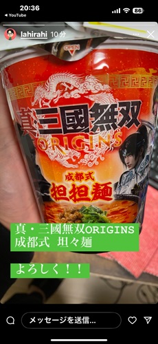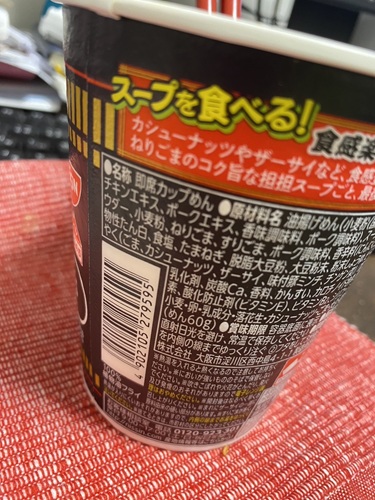 身体に悪そうなこれは・・・担々麺だそうだ。 中身の写真もアップされてたけれど、スープが真っ赤だ。 大丈夫かねw