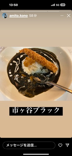 お昼を外で食べた模様。 めずらしくカレーである。 そう、彼はあまりカレー好きではないのだ。 職場の同僚と行ったのかもだな。
