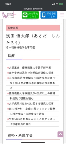 ↑画像を送ってきて「よく見たら先生、ガッツリ精神科の方だったわね 安心安心」とのこと。 「行く前に調べたら、うつとか脳機能の問題は心療内科より精神科の領分らしいという話だったので」 「ま、毎回同じ先生かはわからんけど、とりあえずクリニックとしては信用できそうですわ」