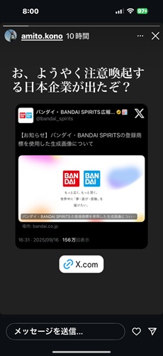 最後にAIの話。 色々話したけれど彼の考えとしては「平たく言えば、人間の文化とその歴史が破壊されかねない技術って点だね。手遅れになる前に停めないと取り返しがつかないくなると思うわねー。それこそアイロボットやターミネーターみたいな露骨なものじゃなくても、気付けば人間社会がガタガタになってるなーんて話になりかねないよ」とのこと。