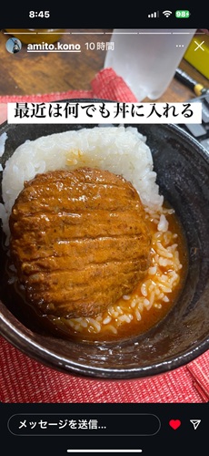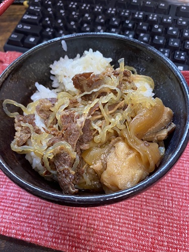 「いただくじぇ」とLineが来た。 私が送った牛丼を食べている模様。