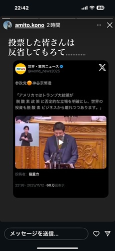 「Xで女性の能力は低いから云々みたいなポストへの返しで、結構高確率でウチの名誉会長出てくるの笑っちゃう」とLineが来た。